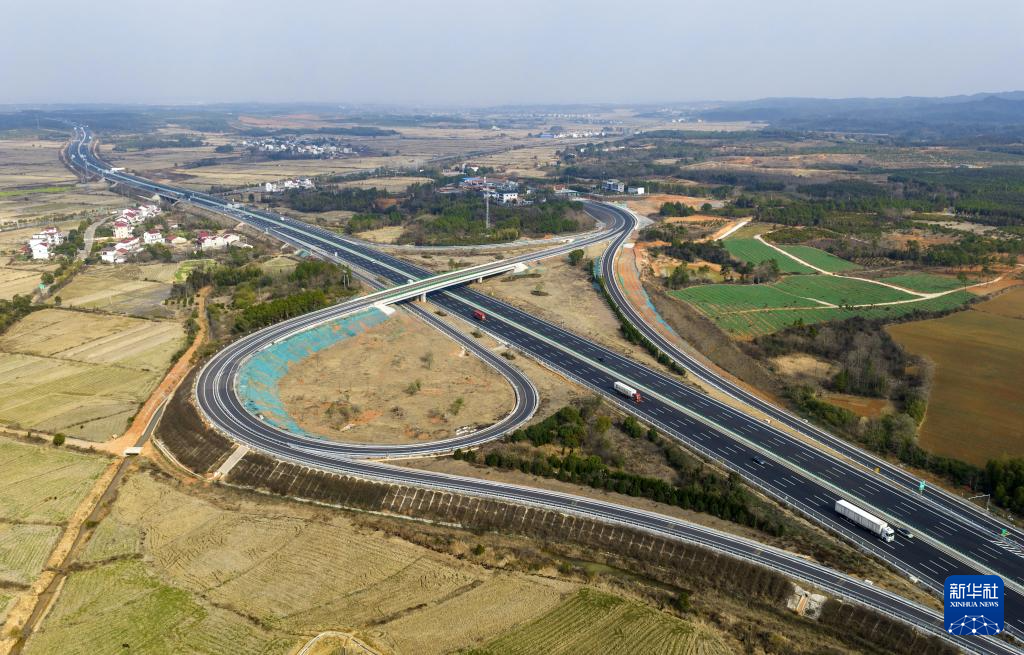 1月31日拍摄的江西樟树至吉安高速公路(无人机照片)。新华社发(王宗豪 摄)