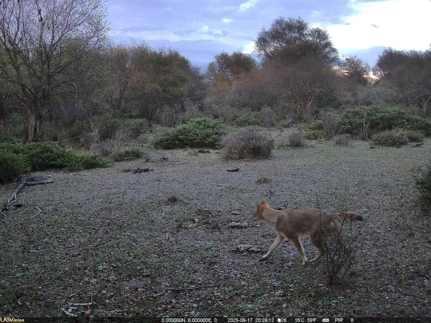 红外相机捕捉到亚洲胡狼活动影像。(图/自治区林业科学院提供)